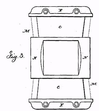 Соединяющая рама F F полевых магнитов в форме отображенной на виде сбоку, рис. 4,