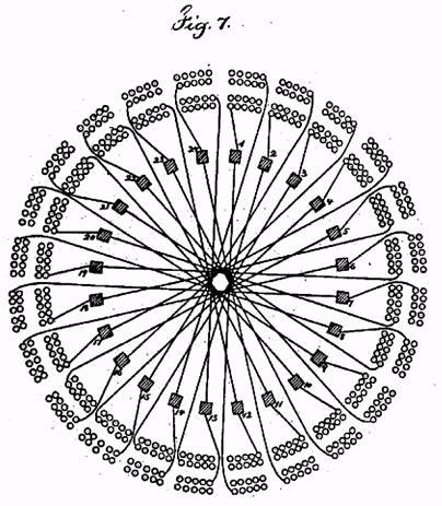 конечный вид коммутирующих стержней, и рис. 6 есть сечение оси и коммутирующих стержней.